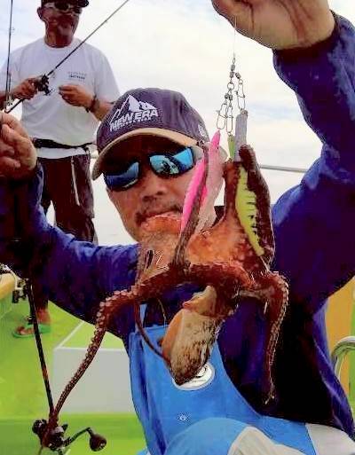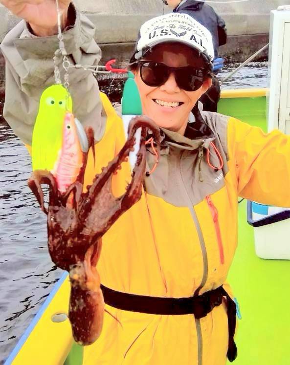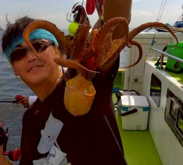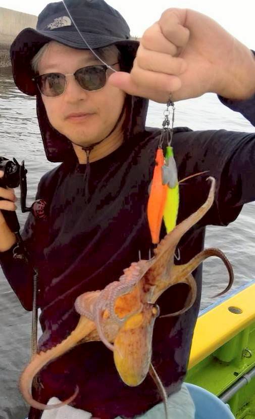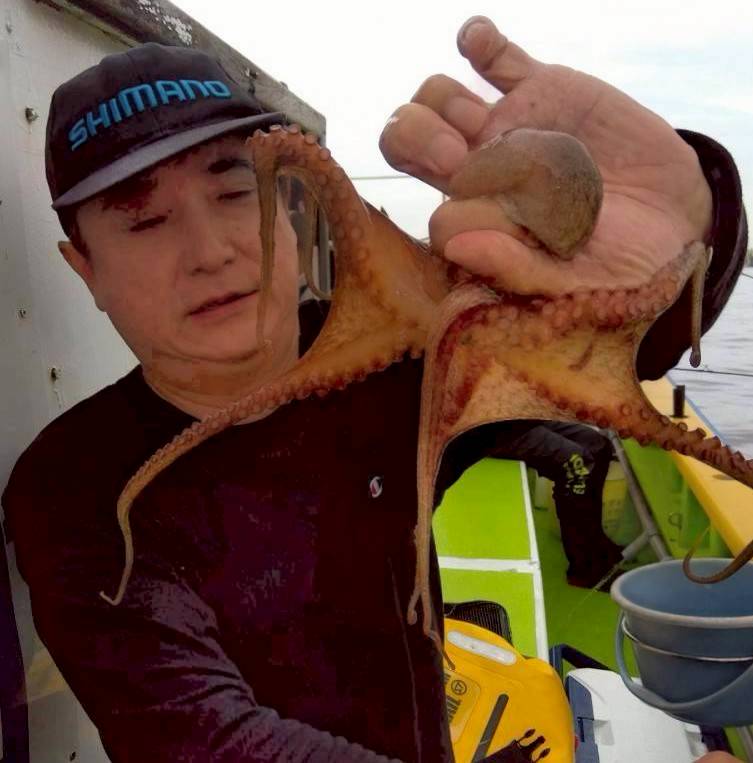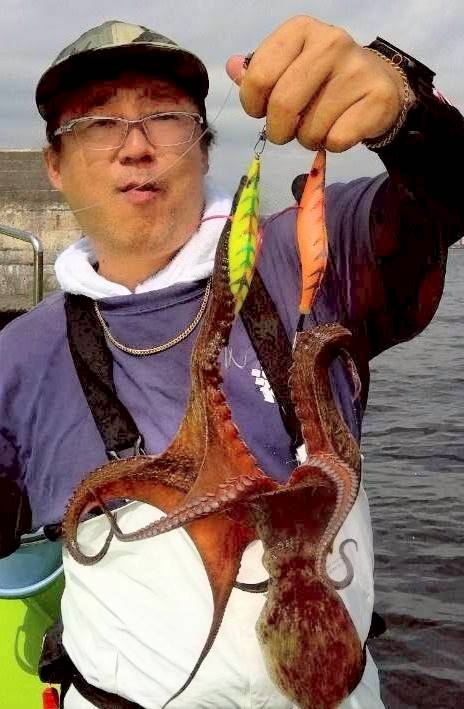 まずエギダコから!近場ポイントから転々やりながら南下!どこも顔は見るも1箇所2〜3杯程度ばかり(^_^;)何とか足で稼いでオデコは消え、トップ4杯が3人。3杯が3人。2杯が3人。1杯が2人。飛び抜けた方はいませんでしたが、平均的に釣れました^_^