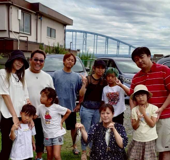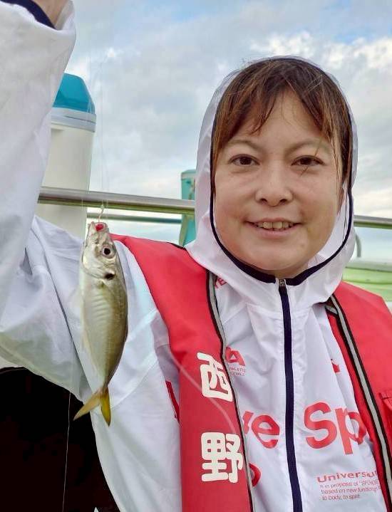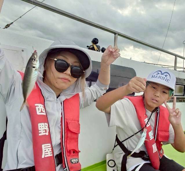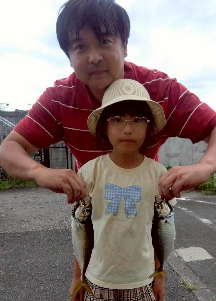 バラシが多いながらもタモを入れたり、ハリスを1.5号から2号に変えてもらったり、試行錯誤しながら(^o^;)28㌢〜34㌢の尺前後のアジを、それぞれのご家族で数本ゲットできました(^^)v