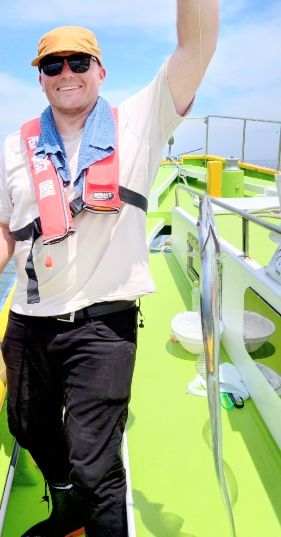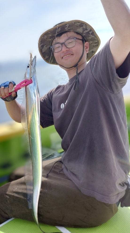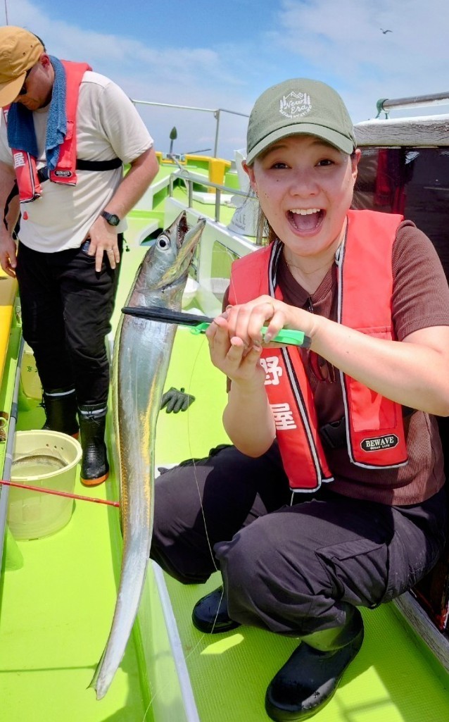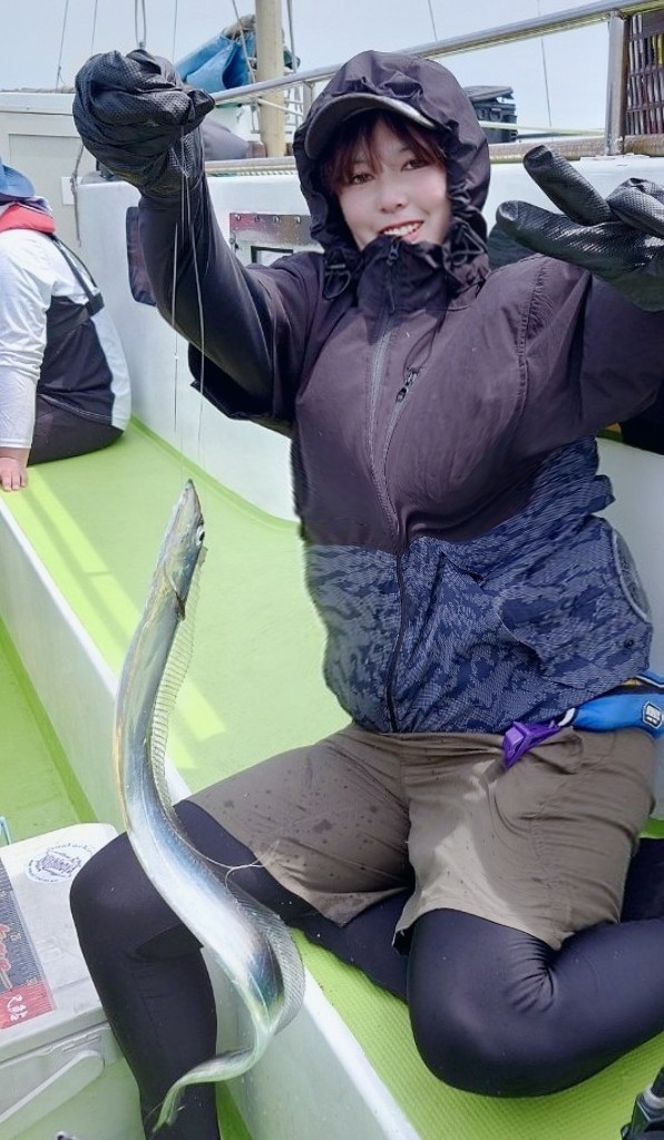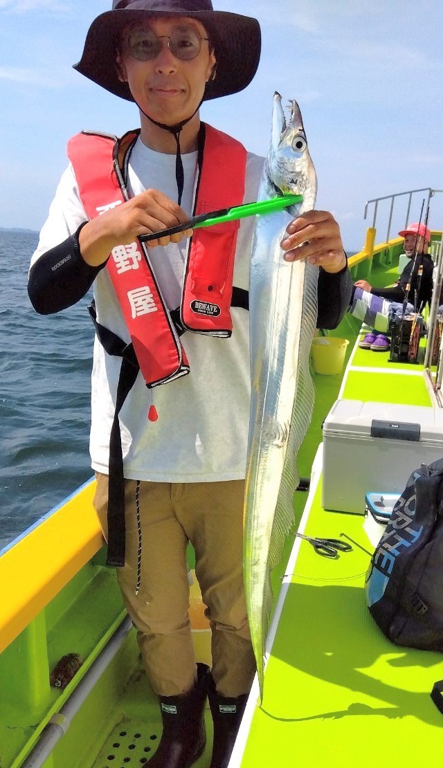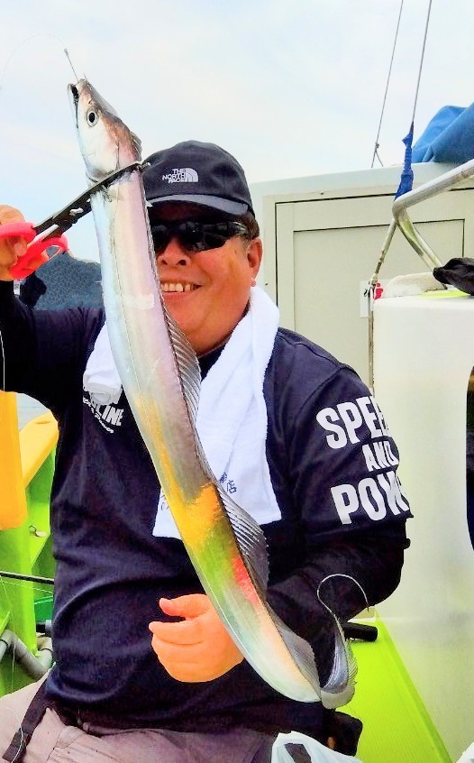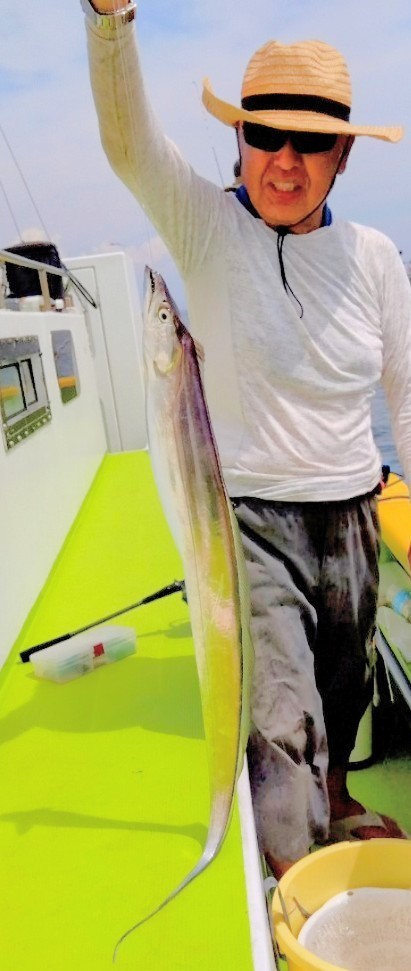 貸竿で船釣り初挑戦の方が大半でしたが、LTアジからスタート!近場のポイントでレクチャーをしながら開始、何匹か見れた程度で練習をしていると反応も無くなり移動。次のポイントは難易度高めでしたが、次のタチウオの練習にも繋がるので続行。誘いやタナが合う方はたまにポツン。この段階で暑さと疲労で竿を置いて休み休みの方もいましたが、晩のオツマミ〜オカズ程度釣れましたm(_ _)mそしてタチウオにチェンジ!