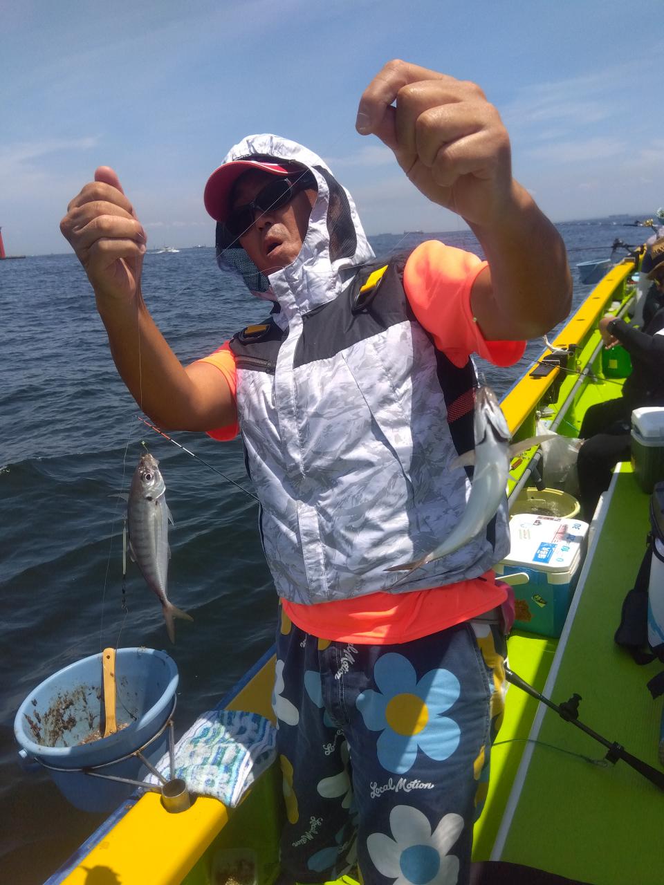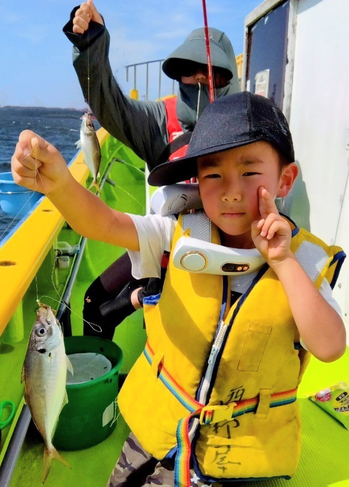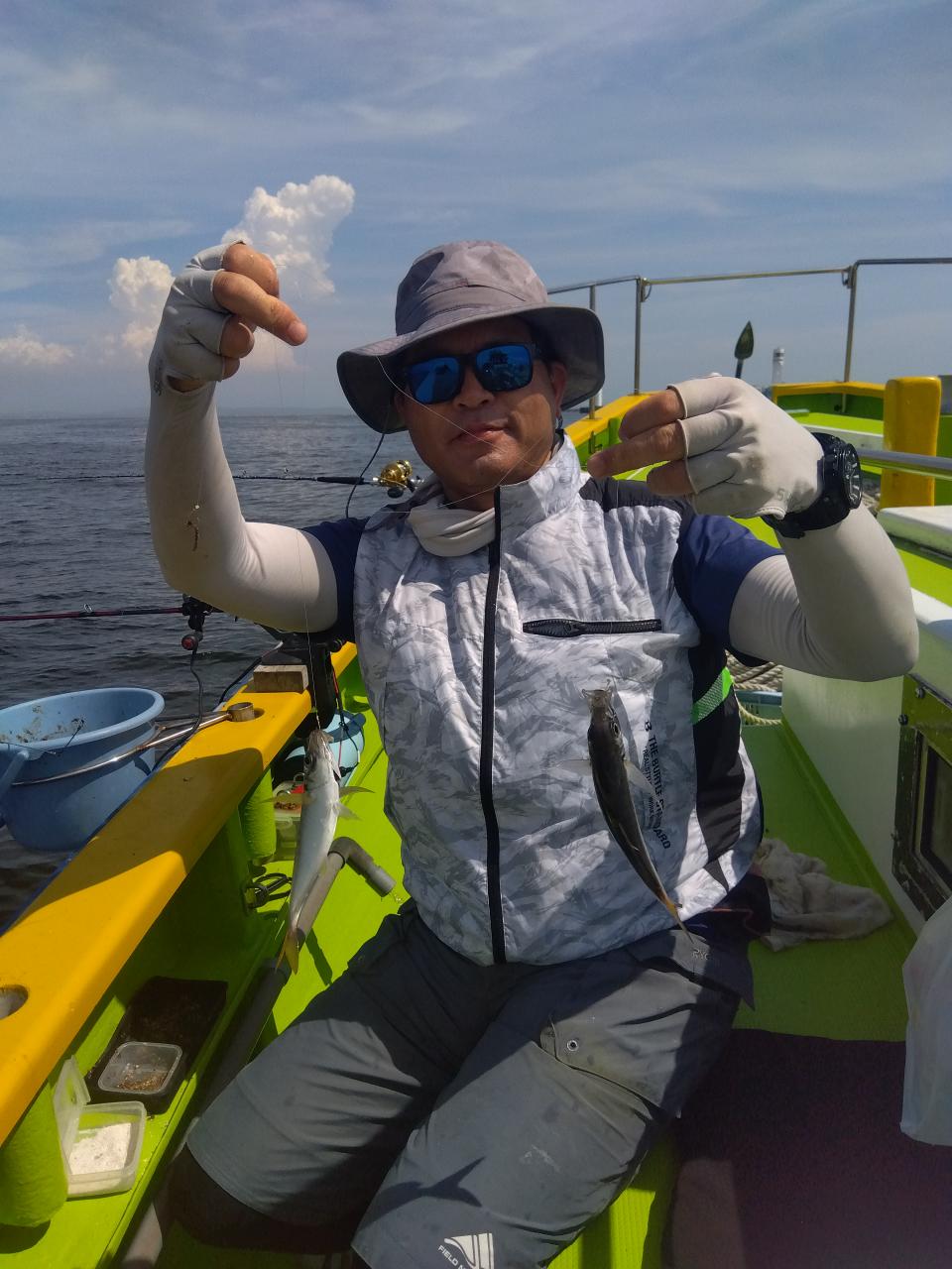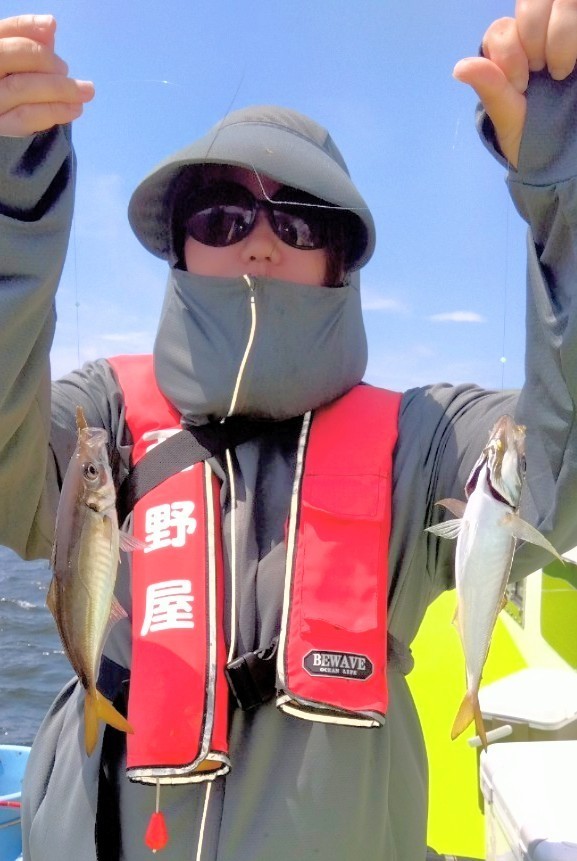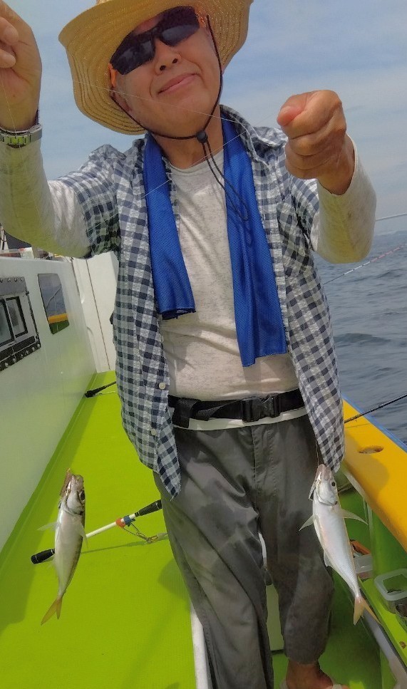 猿島沖に向い僚船に合流させて頂きスタートしましたm(__)mLTアジから一気に水深も深くなり、暑さと疲労の中、貸竿(手巻き)で頑張って頂き、特に女性陣は奮闘して下さりました。良型主体にみなさんオデコなくトップ7本、平均5本前後でお土産になりましたm(__)m
