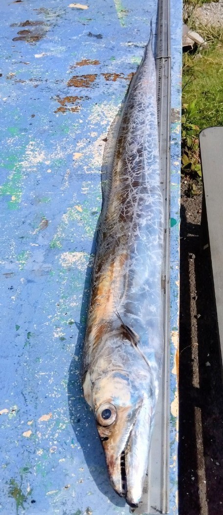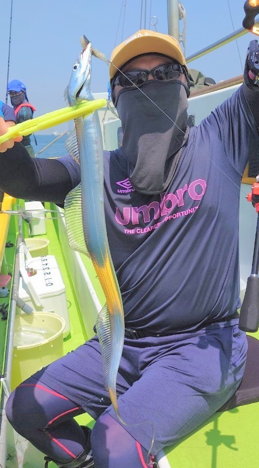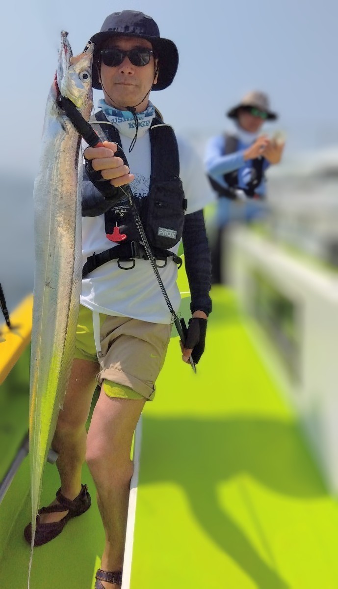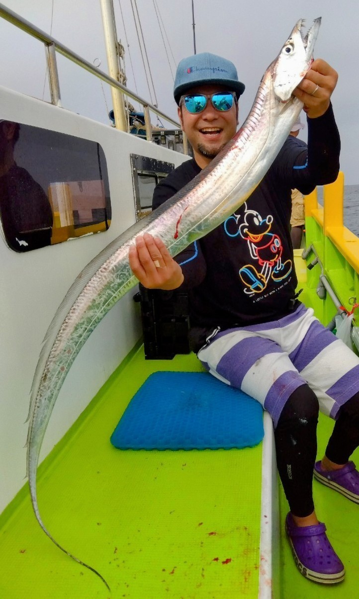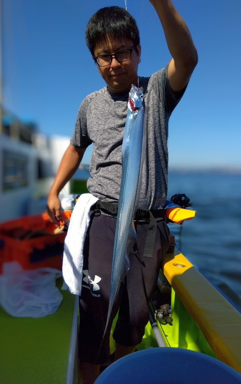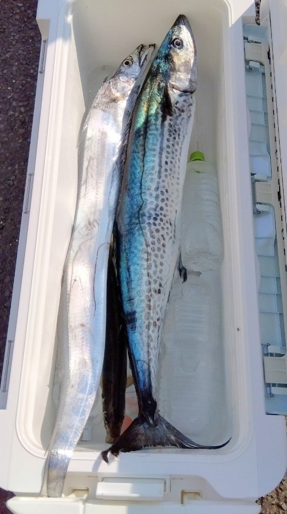 今日の一匹目はいきなり132㌢のドラゴンタチウオでした(^o^;)大きすぎでしたねその後は80㌢前後のタチウオが続き、残り1時間ほどでメーターオーバーのタチウオが2本、33㌢のアジ、トラフグ。