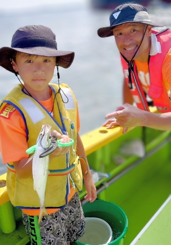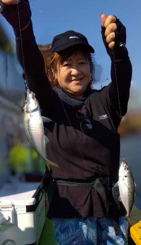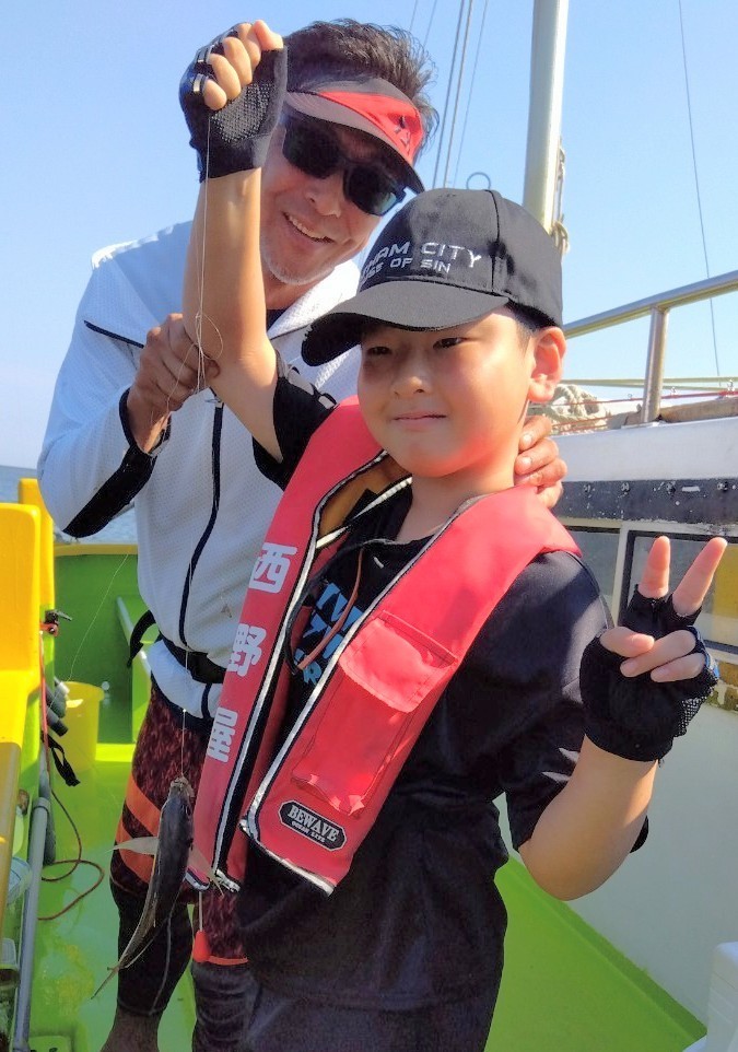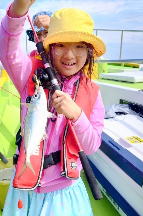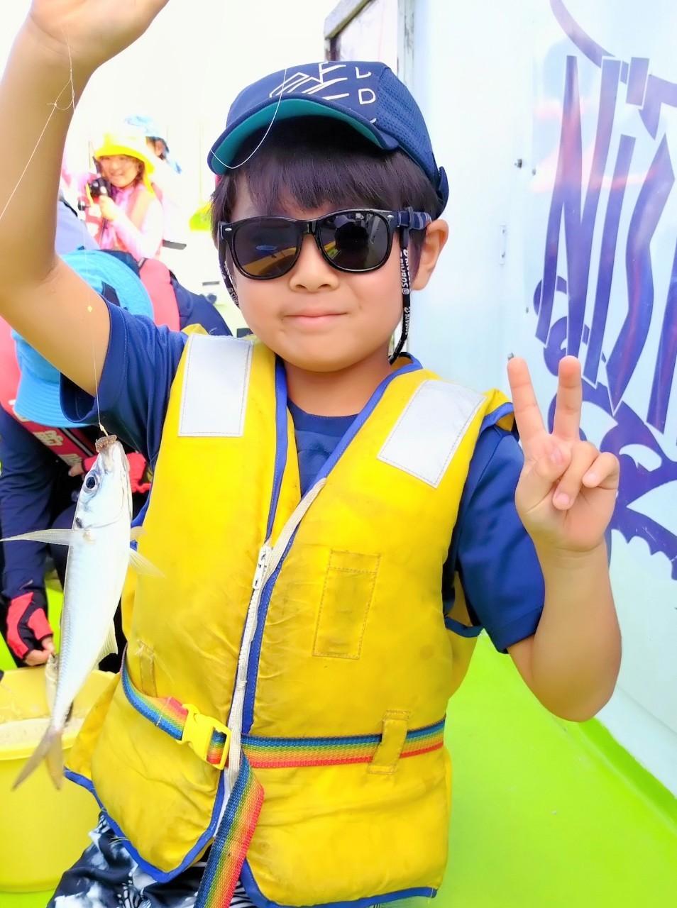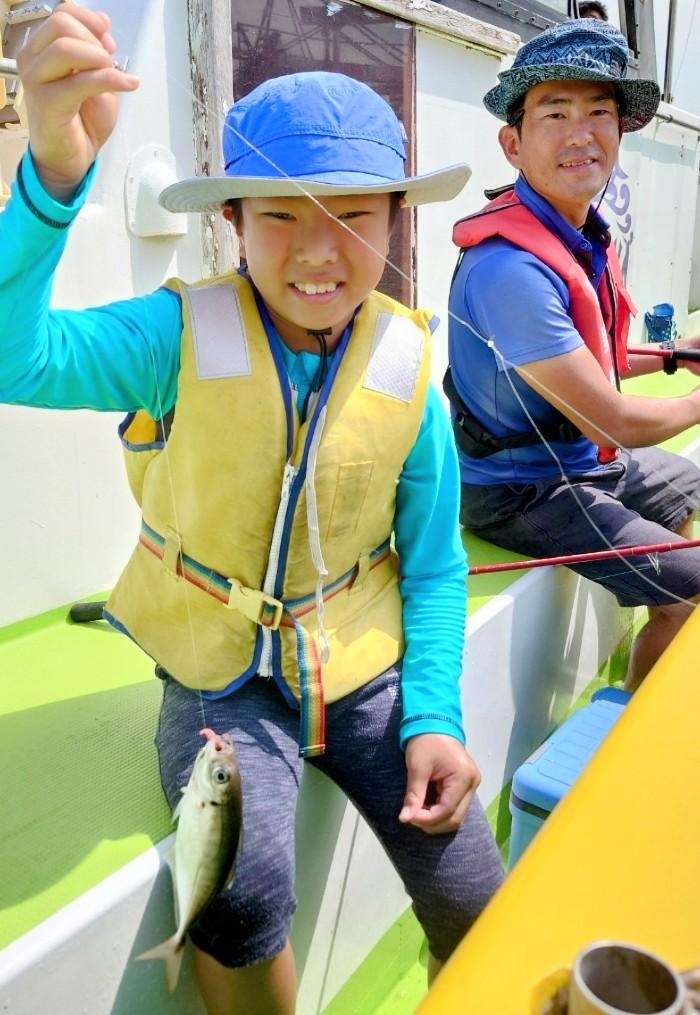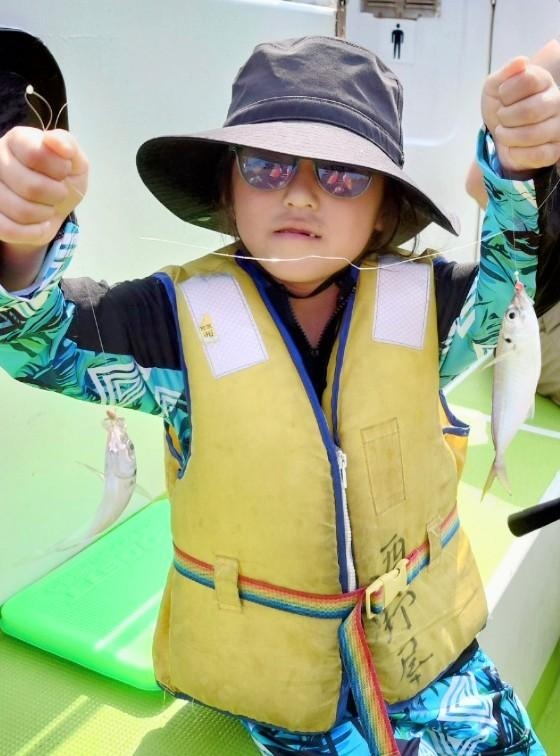 今日も揺れの少ない安全なポイントへ。イカリを下ろしてレクチャーしながら開始するも、今日は完全に始めての親御さんはおらず、昨日に引き続きイワシだらけだったので(^o^;)早めにイカリを上げてポイントを移動しエンジン流しに。