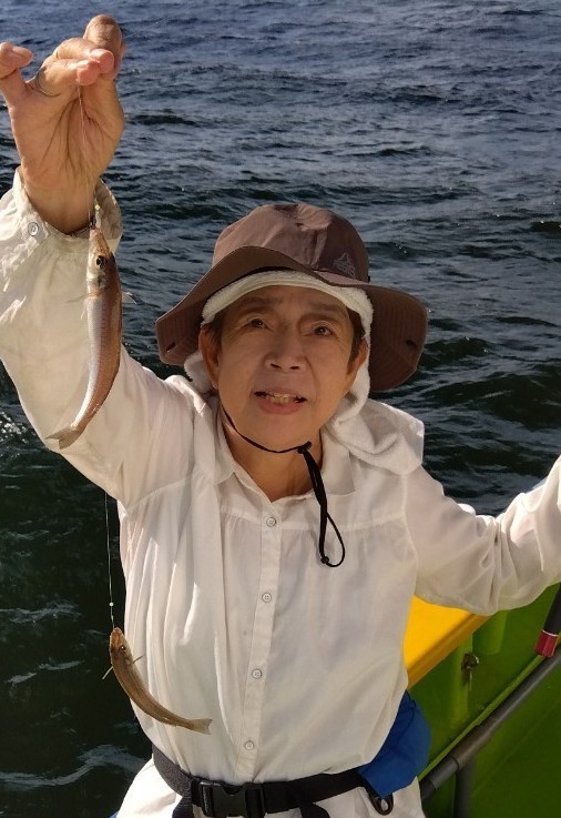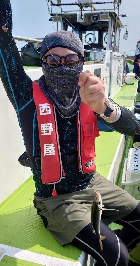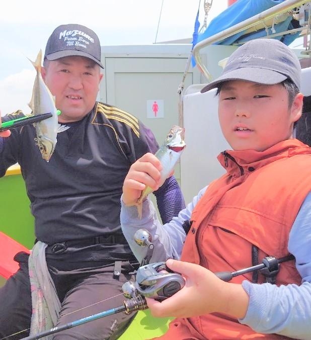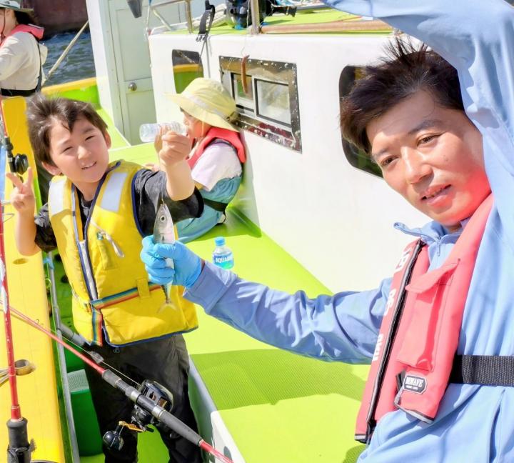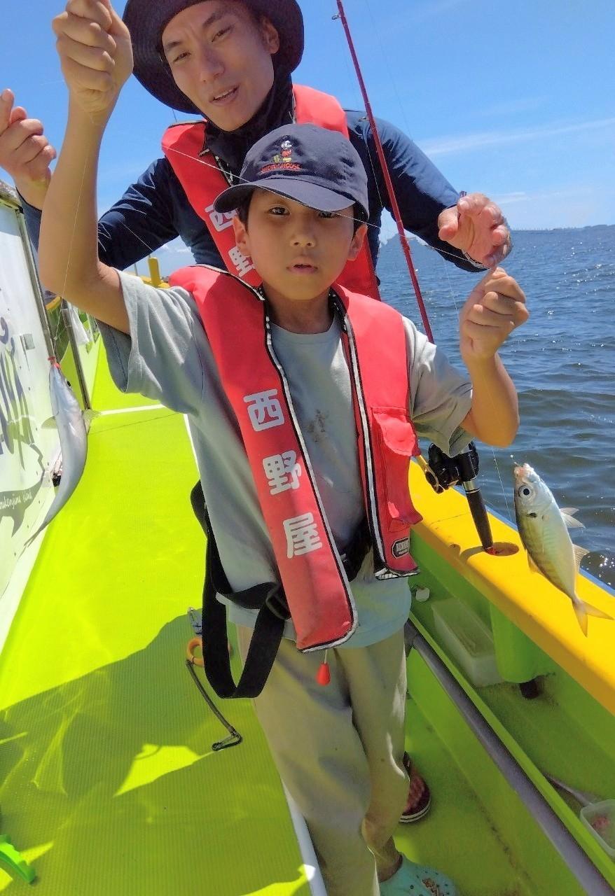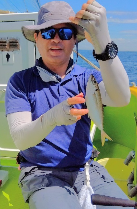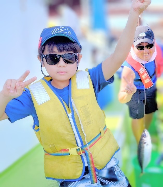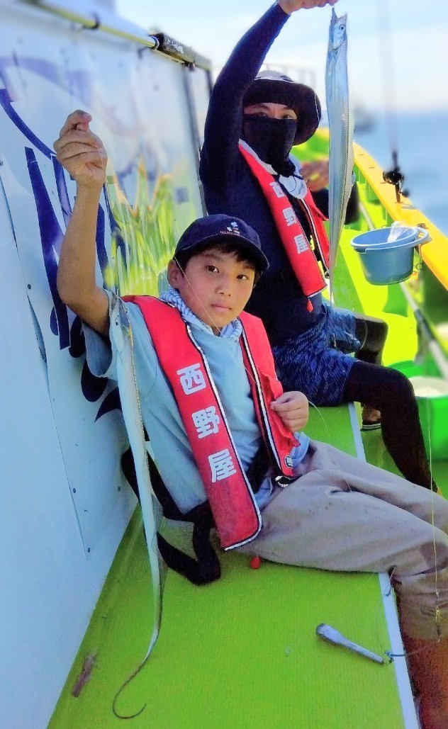 今日も揺れの少ない安全なポイントへ。イカリを下ろしてレクチャーしながら開始するも、今日は完全に始めての親御さんはおらず、昨日に引き続きイワシだらけだったので(^o^;)早めにイカリを上げてポイントを移動しエンジン流しに。