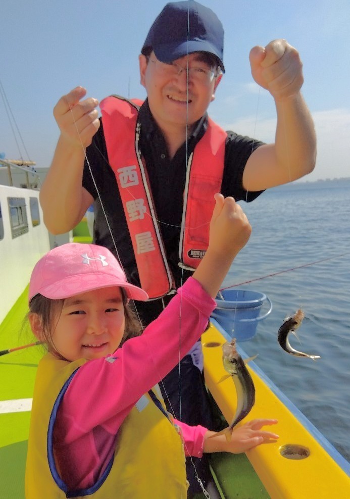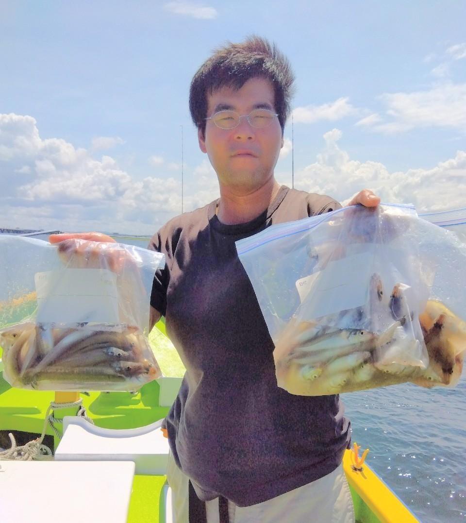 親子の釣果で平均40匹前後、外道にイシモチ、サバ、カサゴ。