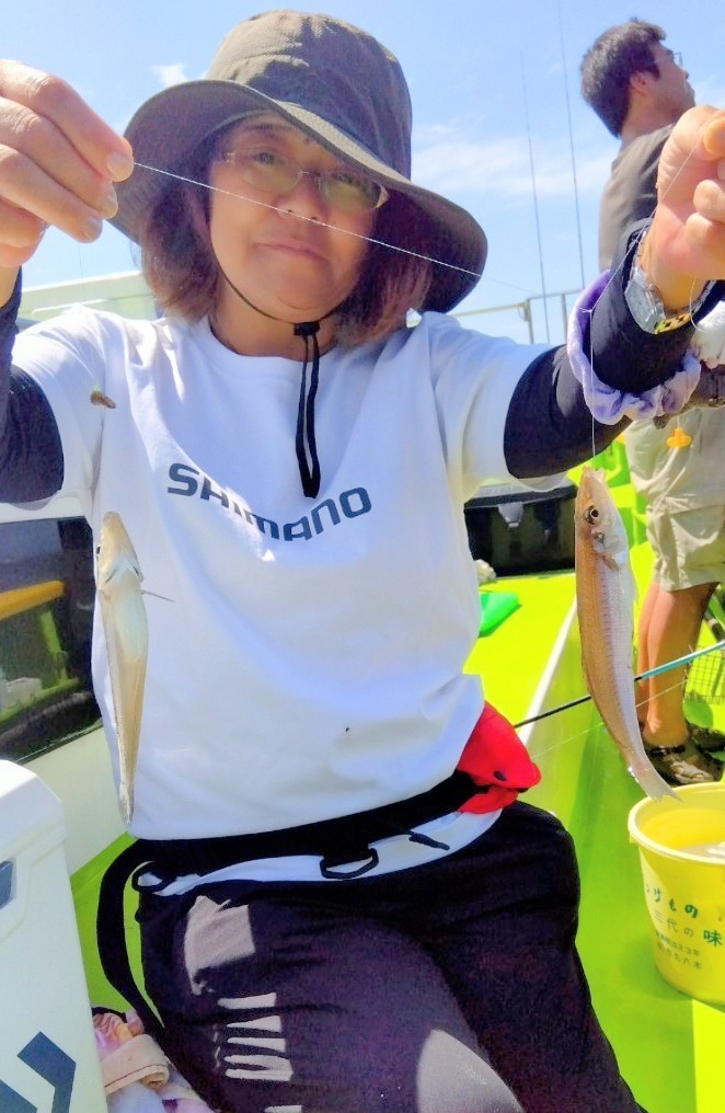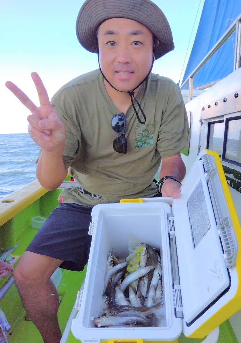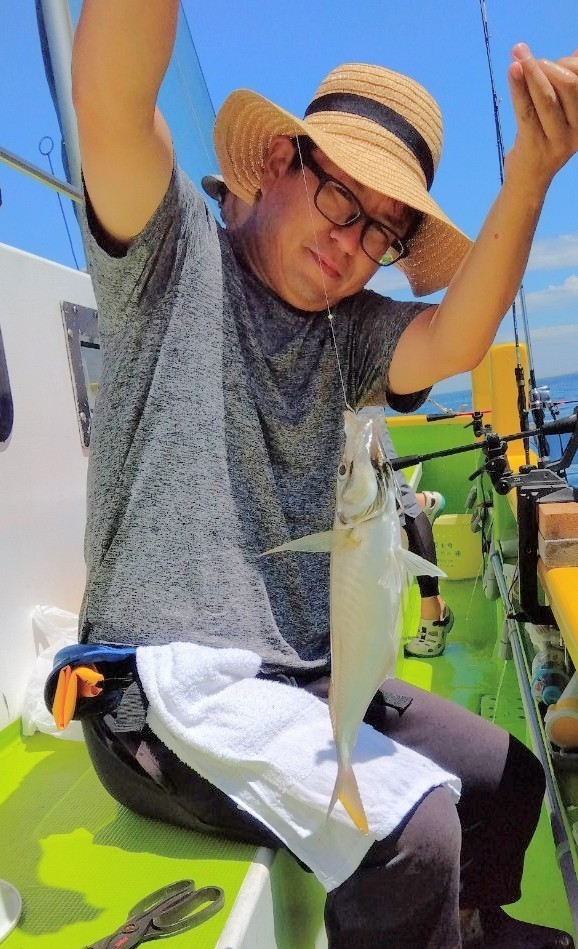 今日は暑さや疲れで休み休み釣りをする人はいましたが、船酔いする人は無く、みなさんポツポツ釣れ続けました(^_^)v