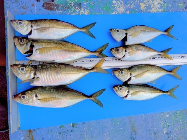 こちらは反応あるも食わず、イシモチと小サバが多くポイント転々として、最後は小サバ混じりながらもアジが釣れるポイントで少し追加して終了となりましたm(__)m