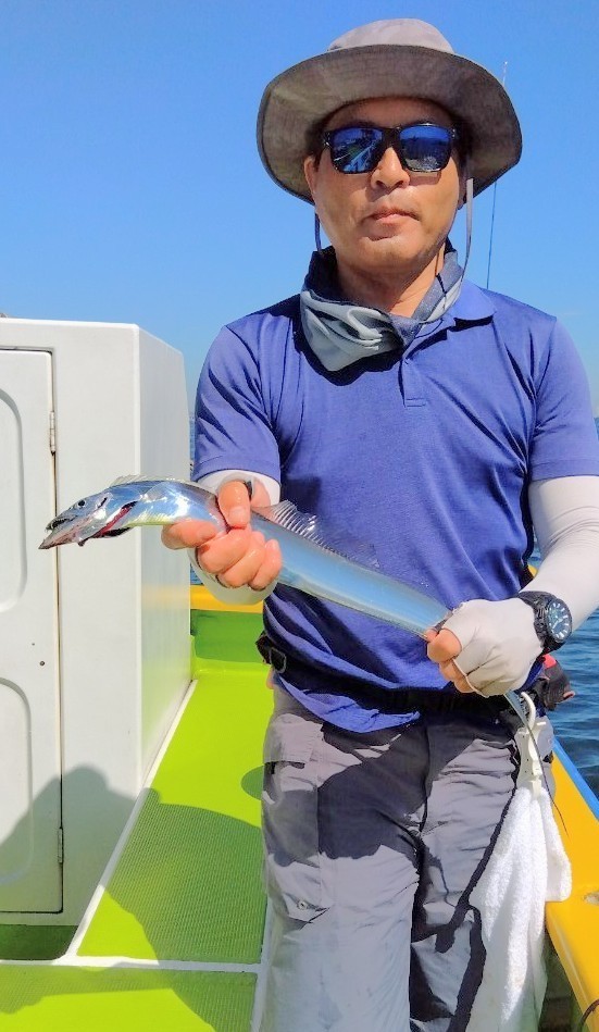 まずタチウオから!湾奥まできてるらしいタチウオを少し捜索しながら南下。前日の大雨の影響か、近場は厳しそう(・_・;)海堡のタチウオの船団に合流させて頂き、釣り自体ほぼ初挑戦の方で6匹、初挑戦の小学生でも3匹と、みなさん型をみれましたm(__)m