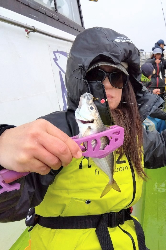 お昼から雨風強まる予報でしたので、風影の無いシロギスからスタート!ところが朝から既に雨風が強く(^_^;)釣りづらい中、手慣れた方はポツン、ポツンとゲット。型も良型多くオツマミ〜晩のオカズ程度釣ったところで、わずか2時間ほどでみなさん満足されたようでLTアジにチェンジ!