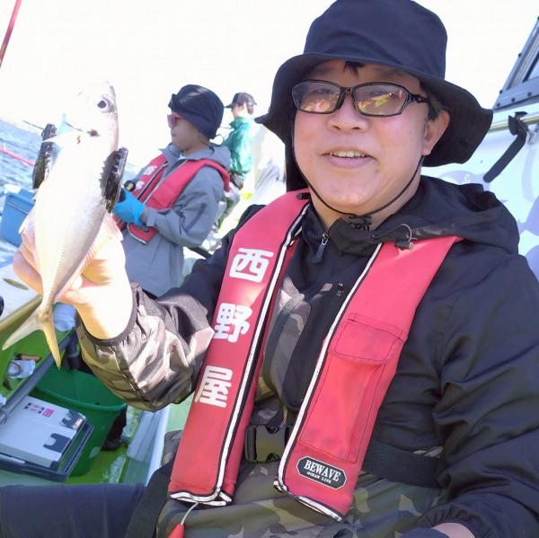 潮が多少動くと少ないながらもアタリはありましたが、掛け損じや水面近くでバラシなど、中々船に上がらず、30分延長しましたが型見た程度でタイムアップとなりましたm(_ _)m続いてアジ!